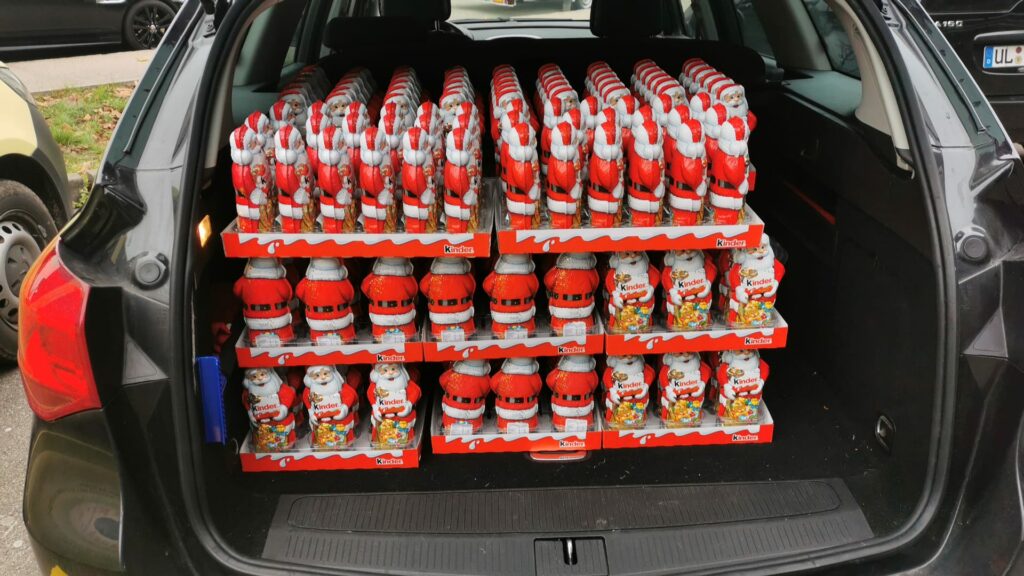 Ganz heimlich hat er für die Größeren die Säcke versteckt, wie sein Kollege zu Ostern. Die Kleinsten werden aber traditionell persönlich besucht.