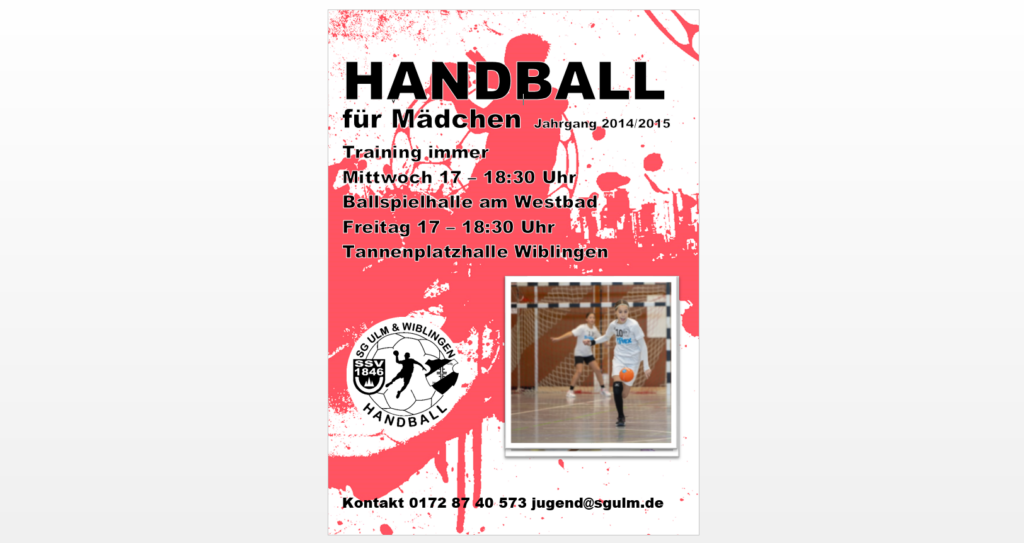 Bist du 9 oder 10 Jahre alt und hast Lust auf Handball? Dann komm zu uns! Wir suchen motivierte Mädchen, die Spaß am Spiel haben und gern mit einem Ball umgehen.