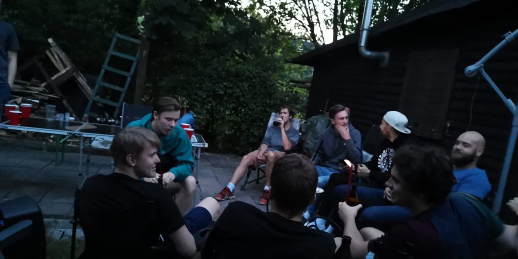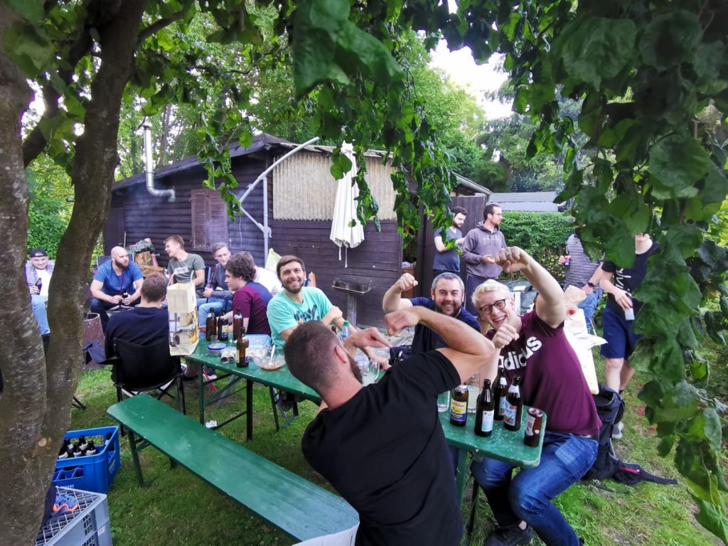 Um das Kennenlernen zu vereinfachen und zu beschleunigen, sollte im Auftrag des neuen Trainers Andreas Schiele eine kleine Fete mit allen Beteiligten stattfinden. Die üblichen Verdächtigen namens „Altstadt-Tour“ und „Homeparty“ mussten aufgrund der Pandemie-Einschränkungen im Ländle leider absagen. Zum Glück stellte uns die Familie Dörfler ihren Schrebergarten zur Verfügung. Hier konnte man an frischer Luft und unter der Wahrung aller Kontakt- und Abstandsbeschränkungen eine kleine Fete unter sonnigem und später sternenklarem Himmel feiern.