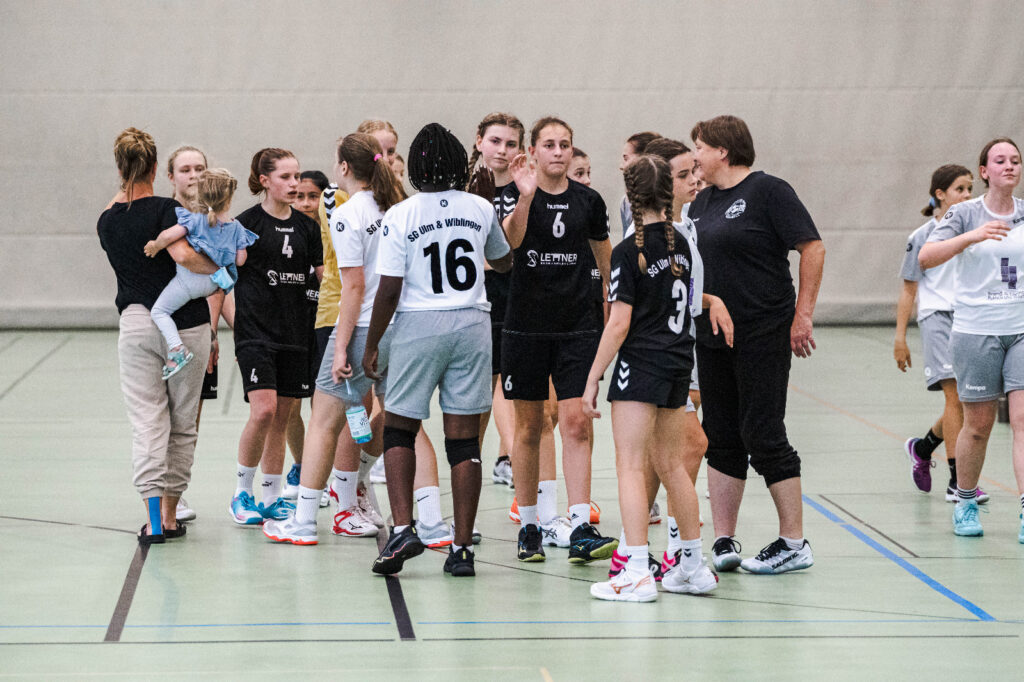 Nach sehr langer Durststrecke lassen es die Mädchen der C-Jugend der SG Ulm & Wiblingen richtig krachen. So erwarteten zwei Ulmer Mannschaften am Nachmittag des 17.07.2021 die Mannschaften von Laichingen und Langenau in der Tannenplatzhalle.