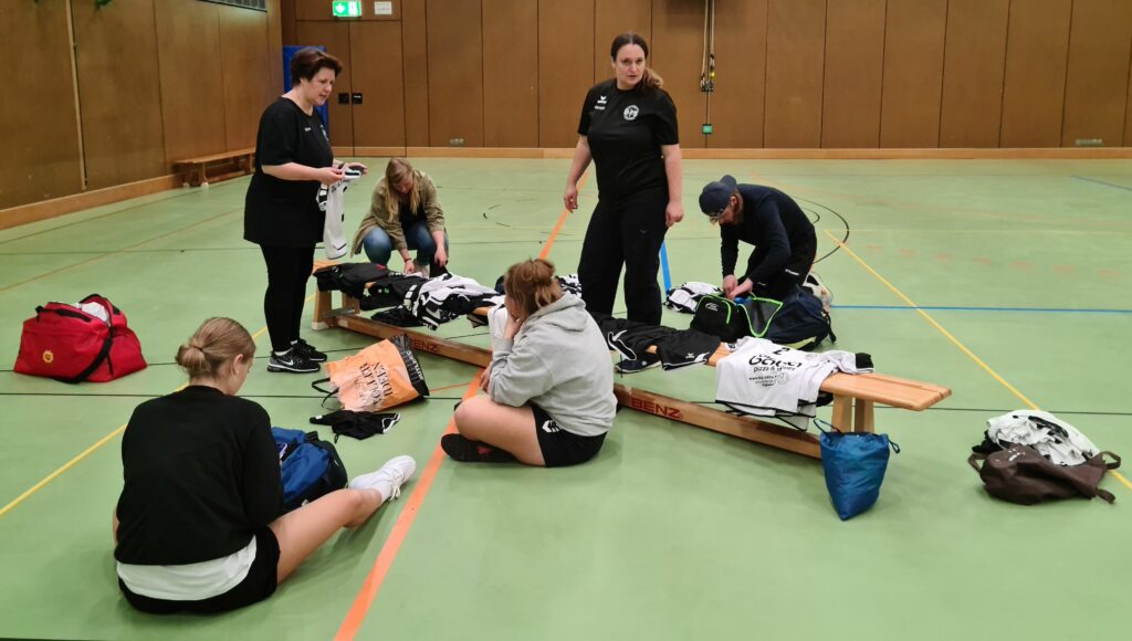 Der rege Austausch stand auch dieses Mal in hohem Kurs. Jung und Erfahren tauschte sich aus. Die Trikots wurden auch noch sortiert, so dass jede Mansnchaft bestens ausgestattet starten kann.