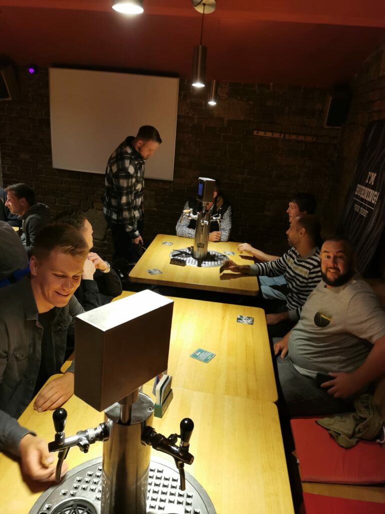 Diese sich langsam drehende Welt mussten wir Ulmer natürlich einen Impuls in die richtige Richtung geben. Und wo fängt Man(n) wohl besser an als in einer Bar, in welcher die Burger nicht nur ausreichend den Appetit stillen, sondern das Bier auch noch selbständig am Tisch gezapft werden kann? Da traf es sich, dass unsere Männer bei ihrer Verdauungsrunde perfekt in das Pilsner Nachtleben stolperten.