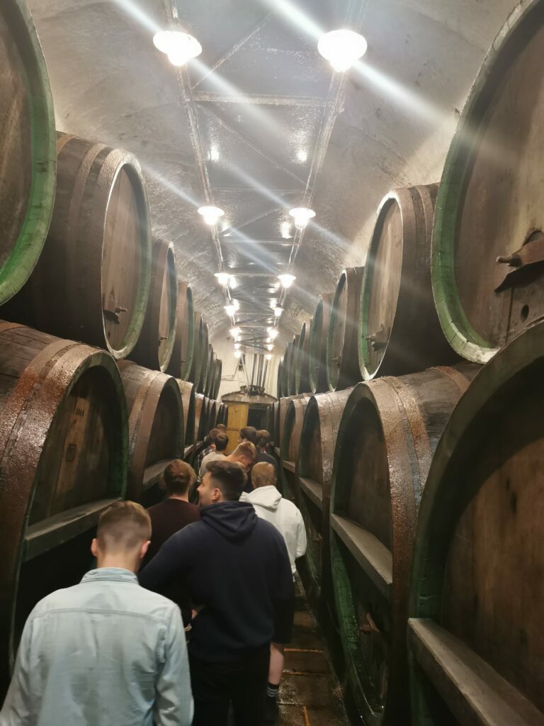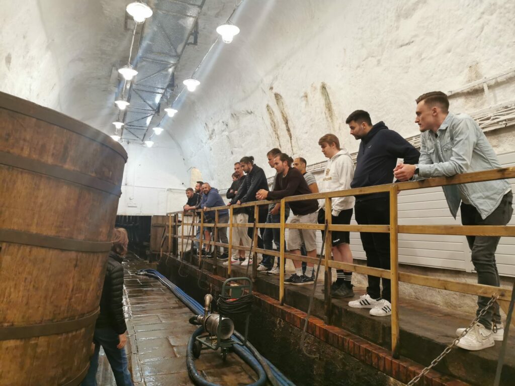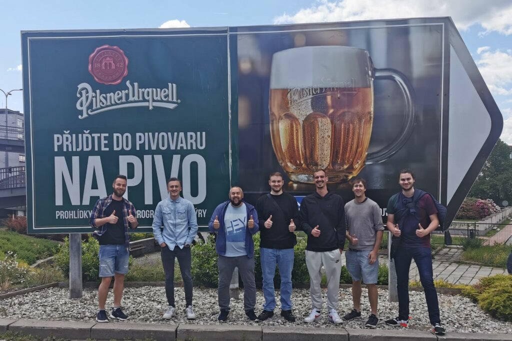 Mit gesättigtem Magen, einem kleinen Verdauungsschlaf und guter Laune ging es gegen 13:30 Uhr wieder Richtung Innenstadt. Nach einem kurzen Bummel ging es auch schon in die Pilsner Urquell Brauerei. Das Getränk, wenn man von Pilsen spricht. Hohe Adelsangehörige und Kaiser waren schon dort. Und nun auch die Ulmer. Als es nach der Abfüllhalle in die Kellergeschosse ging, wurde es kälter und auch die Stimmung düsterer, denn möge man es wagen, ein Bier zu brauen, welches dem Originalen weit überlegen ist, nur um es dann an Tour-Besucher zu verkosten? Nein mag man nicht. Die Pilsner tun es trotzdem. Bei dieser Diskrepanz konnte sich so manch ein Rückraumspieler nicht zurückhalten zu fragen, warum dem so sei. Eine Antwort steht noch aus.
