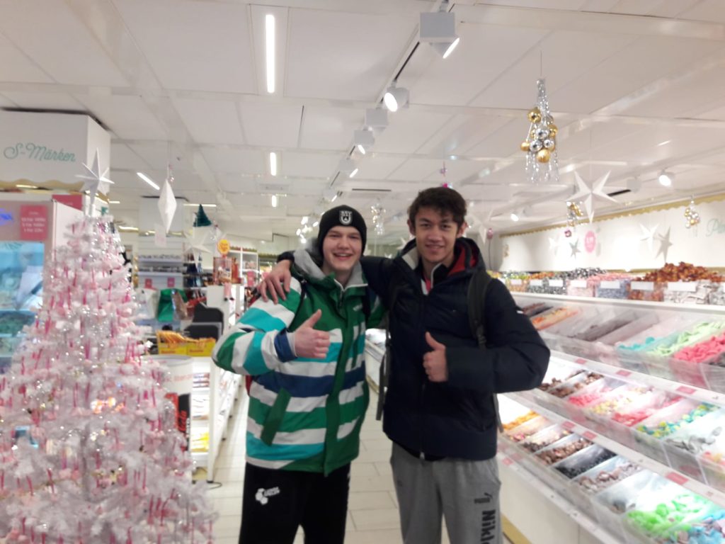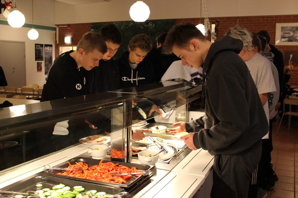 Wir haben gefrühstückt um 8:15 Uhr. Danach packten wir unsere Sporttaschen und liefen zur Bushaltestelle. Nach einigen Haltestellen sind wir in der Arena angekommen und sahen viele Spiele der Elitemannschaften. Danach sind wir zum Abendessen gefahren. Es gab Hotdogs, die Würstchen waren ungewöhnlich weich. Aber es war okay, denn Lund hat sich viel Mühe mit dem Essen gegeben für so viele Spieler.